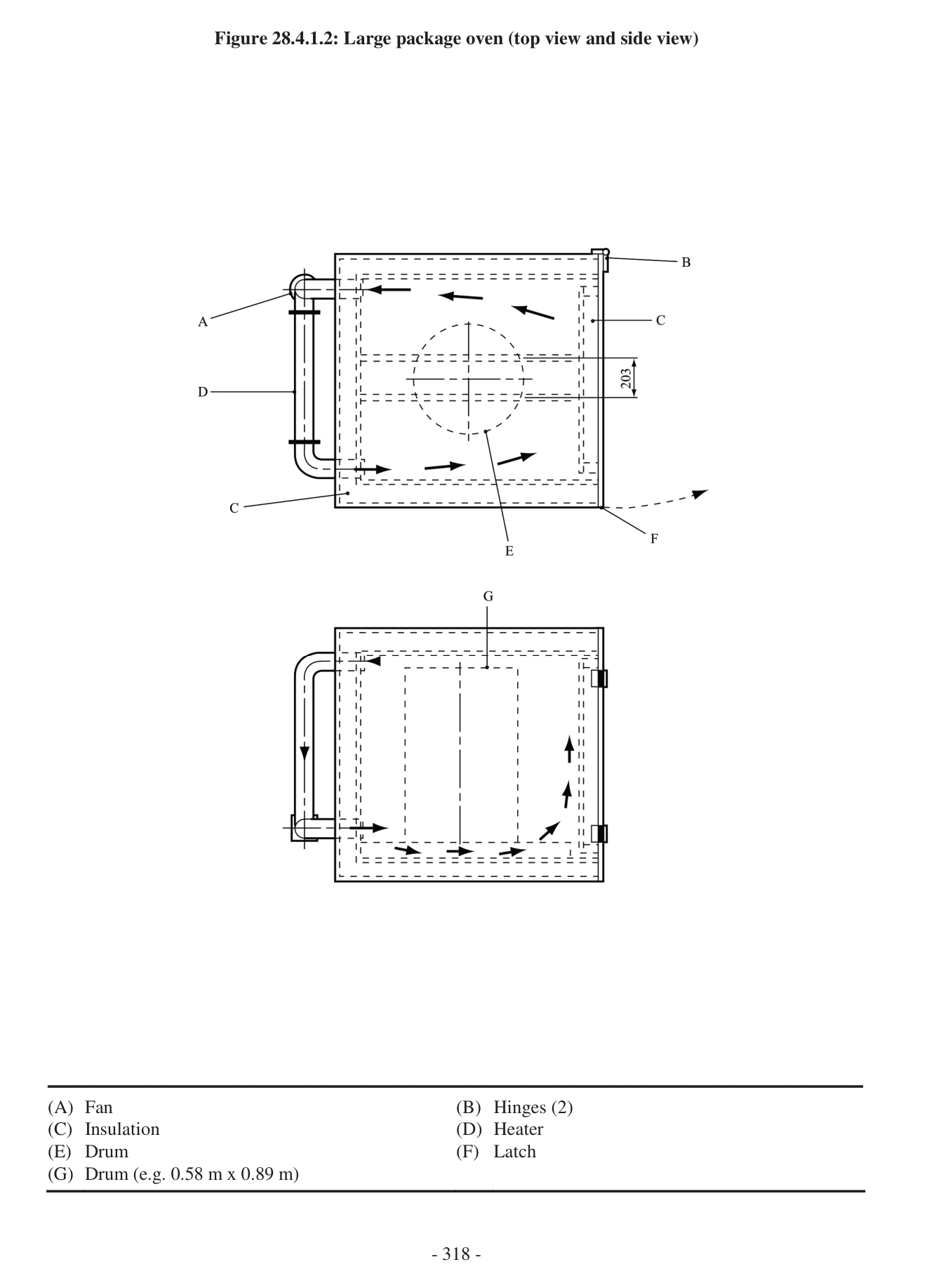 * 온도 조절 시험 챔버 (오븐): 시험할 포장물을 내부에 넣고 설정된 온도를 일정하게 유지할 수 있는 충분한 크기의 오븐이 필요합니다. 챔버 내부는 강제 공기 순환 방식을 통해 온도가 균일하게 분포(±1 ~ 2°C 편차 이내)되어야 합니다. 최대 220리터(55갤런) 용량의 포장물까지 시험할 수 있어야 합니다.